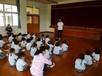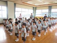 楽しく過ごした一学期を振り返りながら一学期の終業式を行い、夏休みの過ごし方について外に出る時は帽子をかぶる、水分をこまめに摂るなど子ども達と一緒に確認を行いました。健康に注意して楽しい夏休みになるといいですね。