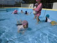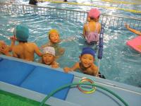 月に2回、年長児はビートスイミングクラブ(西諌早プール)にてスイミング活動を行っています。はじめの頃は顔をつけることができなかった子ども達も、経験を重ねるごとに顔をつけながらビート板で泳いだり、潜ったりすることができるようになってきました!いつも、元気に取り組んでいる子ども達です!!