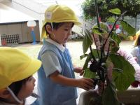 年少・年少々児のクラスでなすびを育て、収穫したなすびで焼きナスを作りました。