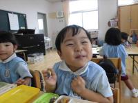 なすびが焼けるとどのようになるのか、色の変化に興味を持ったり、皮をむいたりと楽しく調理を行いました。味付けはしょうゆとおかかです。年長、年中組のお友達にもおすそ分けして皆で美味しくいただきました♪